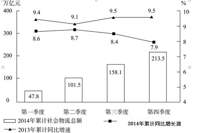 128.2014年全国社会物流总额最高的季度是: