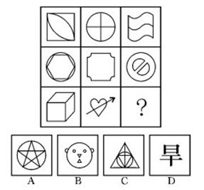 23、 从所给的四个选项中,选择最合适的一个填入问号处,使之呈现一定的规律性:( )