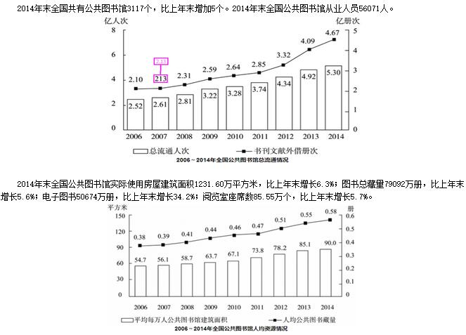 118.2012~2014年,平均每一流通人次约产生多少册次的书刊文献外借( )