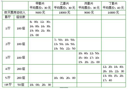 133.影院一天总共放映x场,其中某部电影放y场,排片率就是y/x×100%,那么四部影片中排片率最高的影片是哪部( )