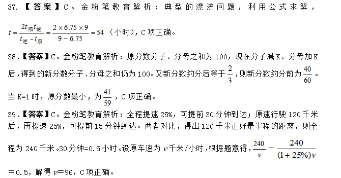37.长江上游的A港与下游S港相距270千米,一轮船以恒定速度从A港到S港需6.75小时,返回需9小时。如果一只漂流瓶从A港顺水漂流到S港,则需要的时间是( )