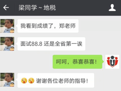 考试完毕,听到考官告诉我的分数的时候,88.8分!我也觉得惊人!等到排名出来的时候,我看了自己的成绩,岗位第一,考场第一,全省第一!感谢金粉笔的各位老师,感谢老师们的辛苦教导!