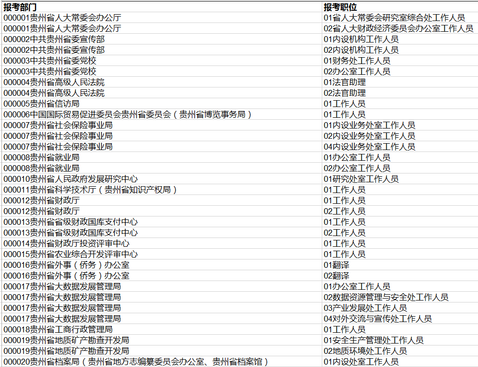 贵州省2017年省、市、县、乡四级机关统一面向社会公开招录公务员工作报名人数不足3:1职位统计