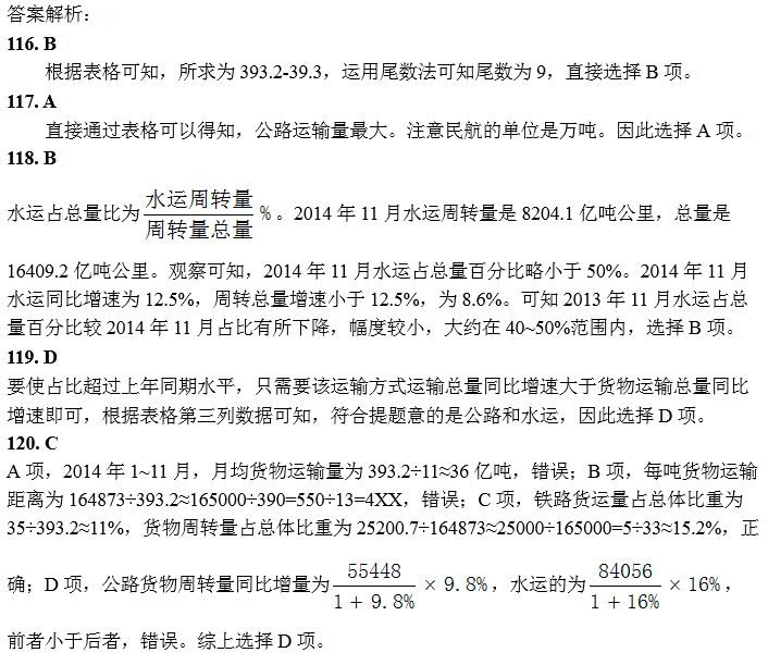 120.关于2014年1~11月我国货物运输状况,能够从上述资料中推出的是( )