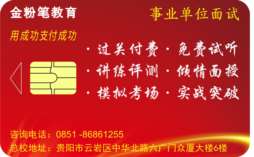 2017年毕节市事业单位招聘3月18日的笔试成绩已经公布。面试方式为结构化面试。针对这次面试,金粉笔教育特开设以下课程,旨在帮助考生面试成功,考上自己的理想职位。为保证辅导质量, 课程有以下六大保障。目的只有一个:通过辅导,让你做到——能够说、说得好、考高分。