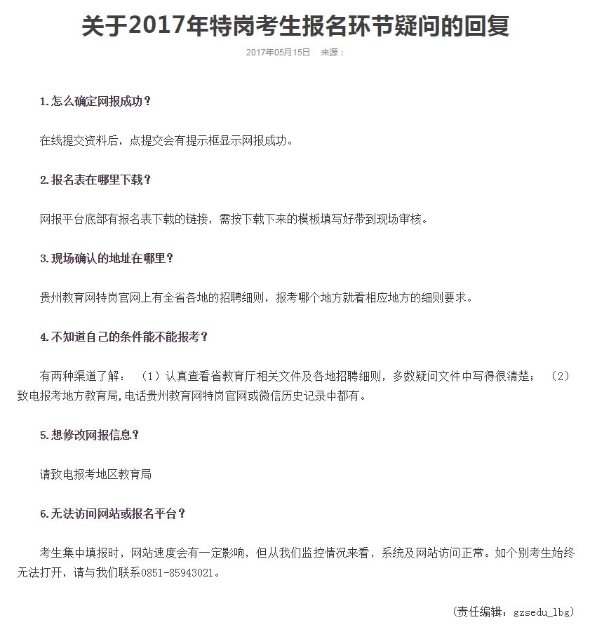[官方消息]关于2017年特岗考生报名环节疑问的回复