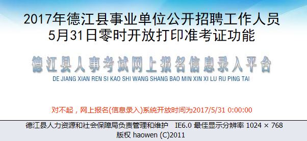 2017年5月31日 至 2017年6月02日 | 铜仁市德江县事业单位 |