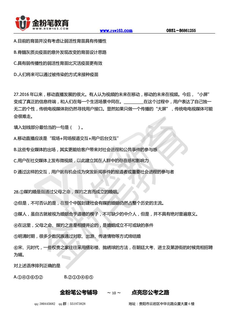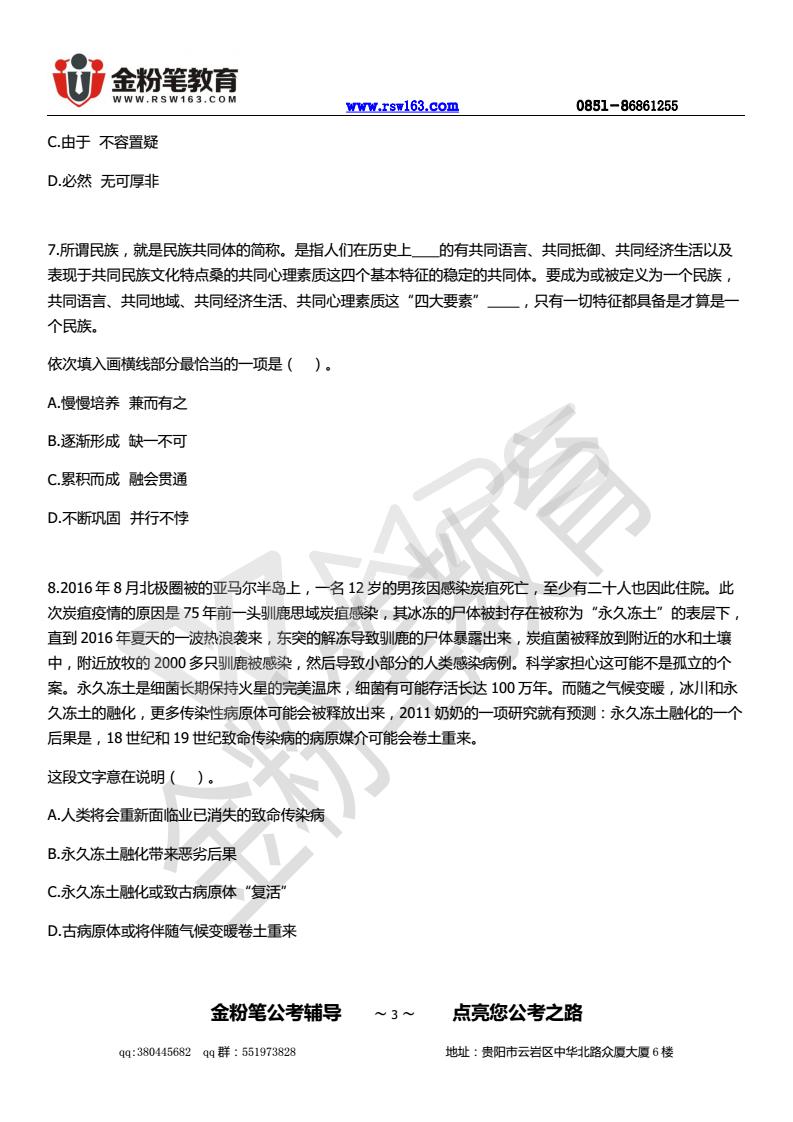 【本文来源于网络,如有不当之处,请联系金粉笔教育反馈修改,或者进入贵州人事考试信息网进行查看】