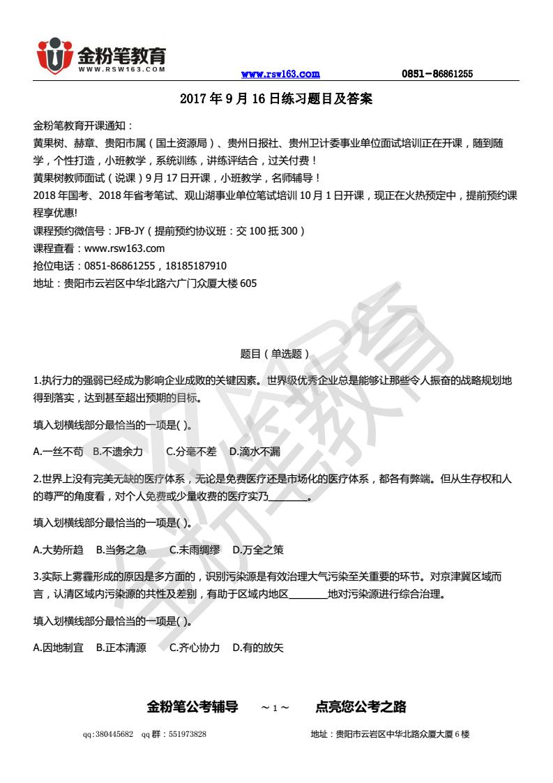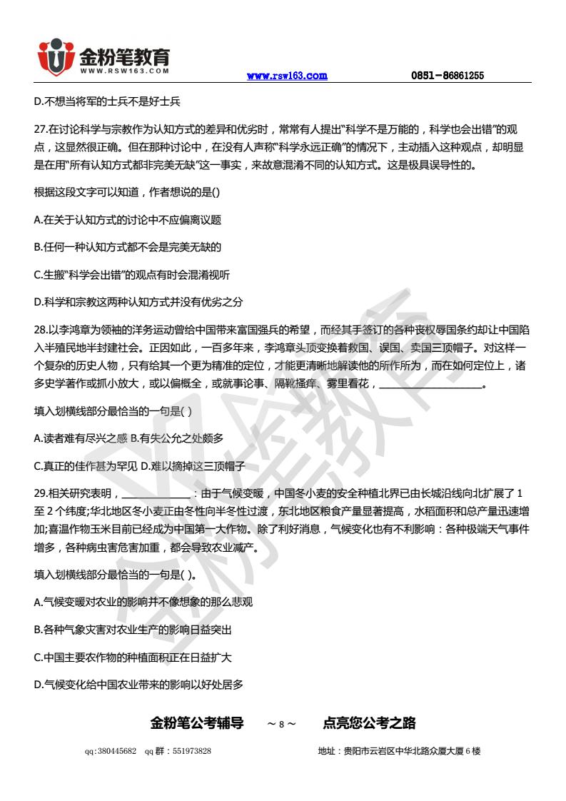 【本文来源于网络,如有不当之处,请联系金粉笔教育反馈修改,或者进入贵州人事考试信息网进行查看】