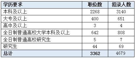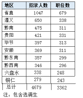 今年招考在学历要求做了国民教育与全日制教育的区分,647个职位、815人仅限全日制学历报考,从学历层次来看,要求本科以上的职位达到2910个、招录人数为3948人,占总职位数的86%、占总人数的84.3%,较去年高出十个百分点左右,而要求大专学历的人数与职位数的占比相应缩减,说明学历门槛有所提升,贵州公务员招考对高学历人才的需求越来越高,具体要求考生们可详细查看职位表。