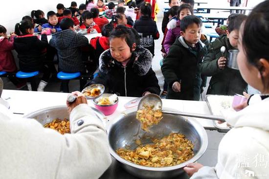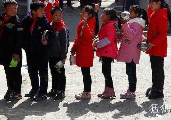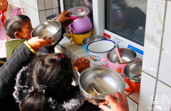 由于地处深山,孩子们每天中午都要在学校里吃午餐,在这里,生活老师们负责把饭菜做好,其它的事情需要孩子们独立完成。