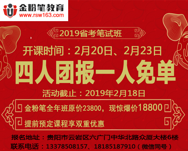 虽然目前2019年贵州公务员考试时间尚未确定。但是,通过2014-2018年贵州公务员招录考试公告发布时间来看,贵州金粉笔教育总结后发现,近年来贵州公务员考试时间基本稳定,都是3月初发布公告,4月份笔试,参加全国联考。所以贵州金粉笔教育推测,2019年贵州公务员考试公告预计在3月初发布,报名时间和笔试时间有可能分别在3月和4月下旬。