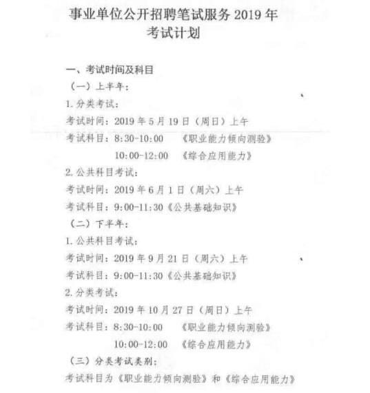 现在根据网友的消息显示预计2019上半年贵州事业单位统考笔试时间2019年5月19日,笔试科目为《综合应用能力测试》和《职业能力倾向测验》,2019上半年贵州事业单位联考笔试时间为2019年6月1日,笔试科目为《公共基础知识》;2019下半年贵州事业单位统考笔试时间为2019年10月27日,笔试科目为《综合应用能力测试》和《职业能力倾向测验》,2019下半年贵州事业单位联考笔试时间为2019年9月21日,笔试科目为《公共基础知识》,不管消息是否真实,最终事业单位公告发布时间请以正式公告发布为准!