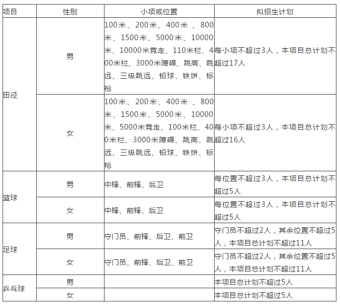 (一)招生项目:田径、篮球、足球、乒乓球。