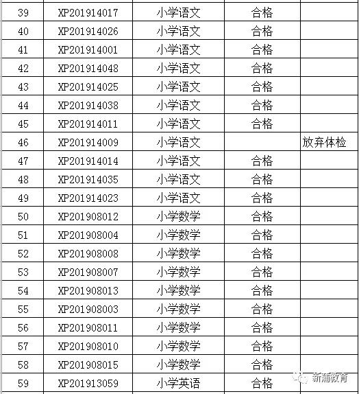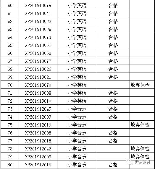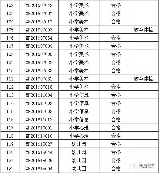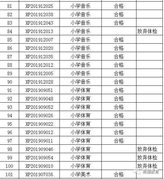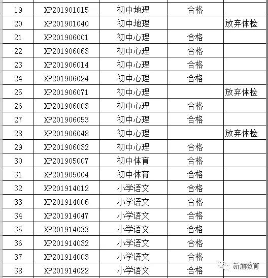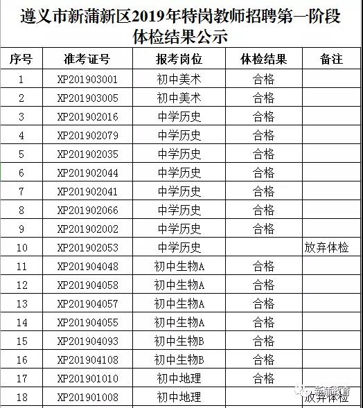 2019年遵义市新蒲新区特岗教师招聘第一阶段体检结果公示