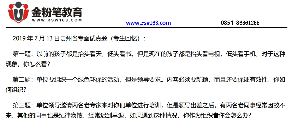 2019年贵州公务员面试真题(7月13日|考生回忆)
