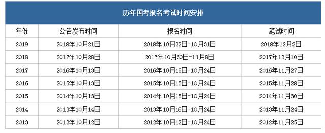 那么,2020年国考招录公告是何时发布呢?我们先来看看历年发布时间: