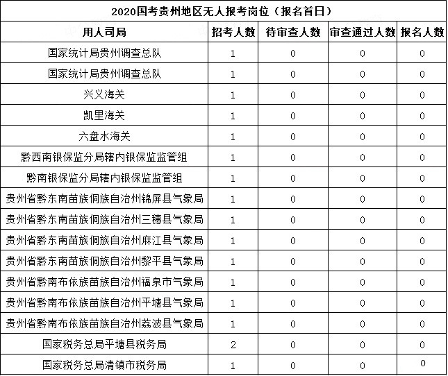 2020国考贵州考区报考10月15日无人报考职位(截止10月15日16日)