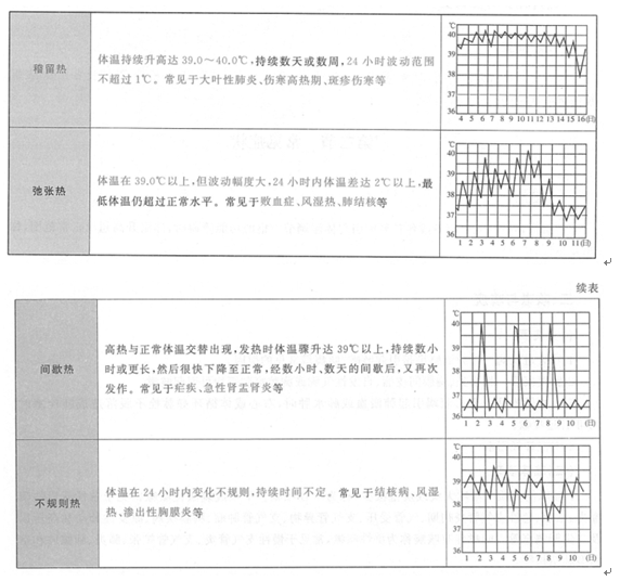 (1)体温上升期:常表现为疲乏无力、肌肉酸痛、皮肤苍白、畏寒或寒战等。该期产热大于散热,使体温上升。