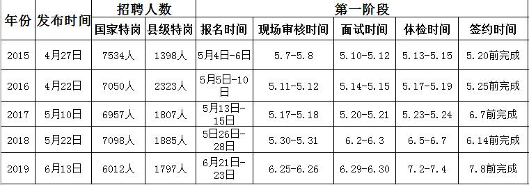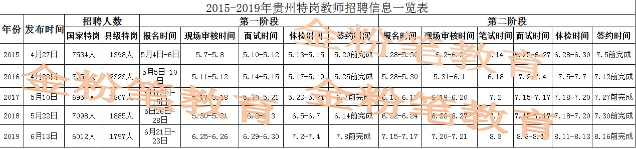 2015-2019年贵州特岗招聘时间安排一览表