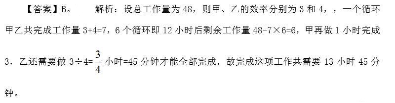 例3:单独完成某项工作,甲需要16小时,乙需要12小时,如果按照甲、乙、甲、乙、……的顺序轮流工作,每次1小时,那么完成这项工作需要多长时间?