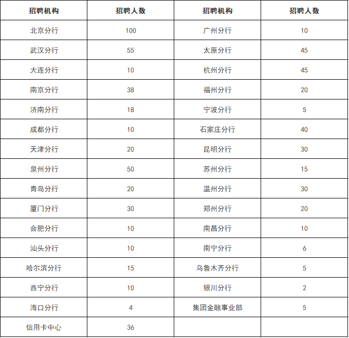 参加本次招聘的机构有中国民生银行辖内的31家经营机构(按工作地点搜索职位详情)。