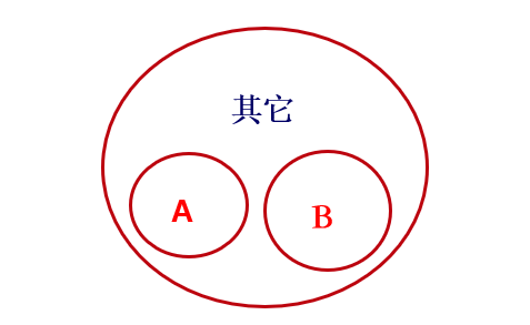 反对关系与矛盾关系都是一种解题的方法,需要大家熟练掌握,利用好了这样的方法,做题才会事半功倍。所谓反对关系,主要指的是除已知两方面之外还存在其他情况,这样的关系即称为反对。我们通过以下这个集合来理解,在下面这个大的集合里面,除了已知的AB两个部分之外,还有其他部分,则A与B即为反对关系。