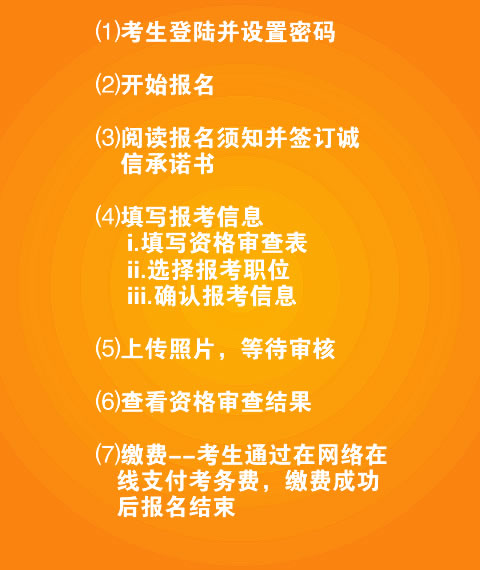 报名统一在网上进行,不设现场报名点。报名操作技术咨询电话:0851-87229400,报名按以下程序进行:
