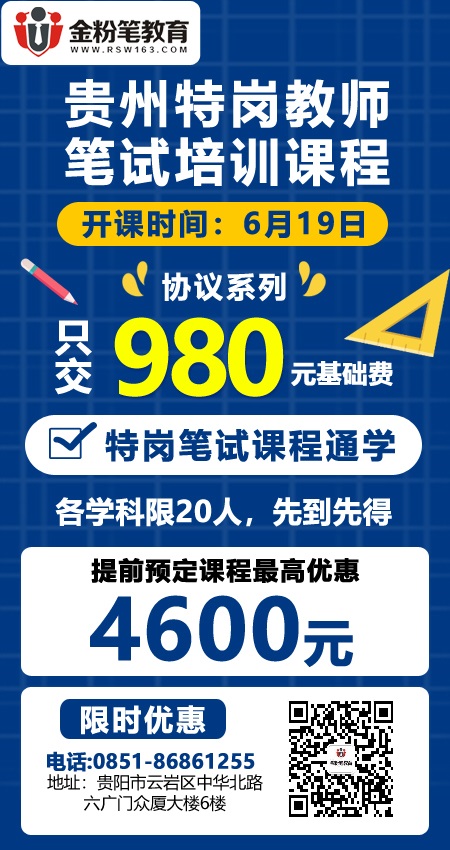 开课时间:中小学第七期6月5日,幼儿特岗:报名后先领取线上课程学习,线下开课等通知。 预约微信号:18185187910、13378508157、13368515037(微同) 官方网址: www.rsw163.com 0851-86861255 地点:贵阳市云岩区中华北路众厦大楼6层 | |||||