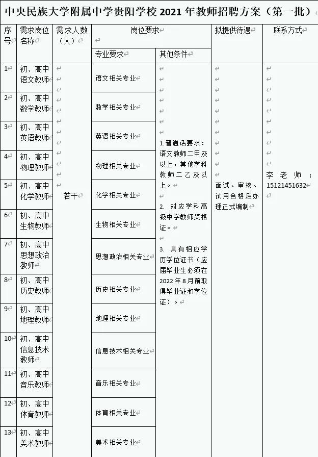 1.招聘学科:初、高中语文、数学、英语、思想政治、历史、地理、物理、化学、生物、信息技术、音乐、体育、美术。2.招聘要求:(详见文末所附表格)