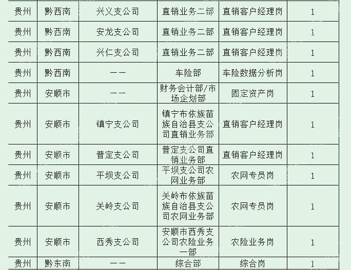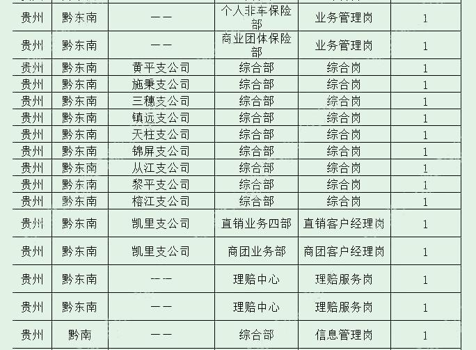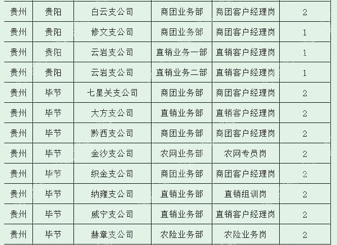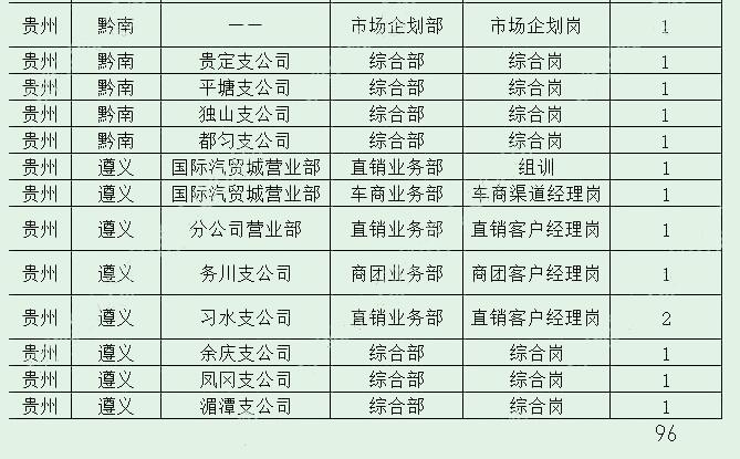 省公司和贵阳、遵义、安顺、六盘水、黔东南、黔南、黔西南、毕节、铜仁9家市州分公司及下级区县机构共招聘96人。