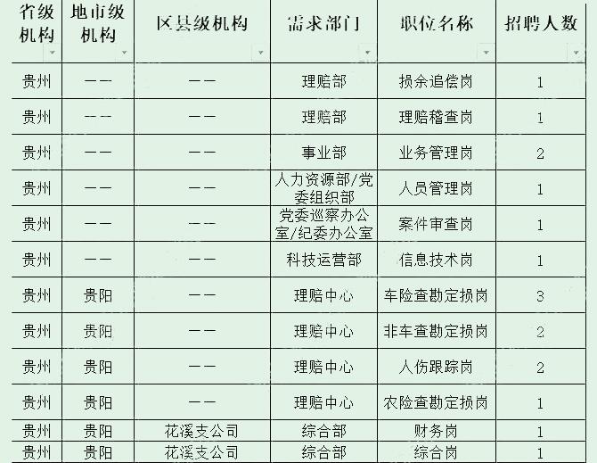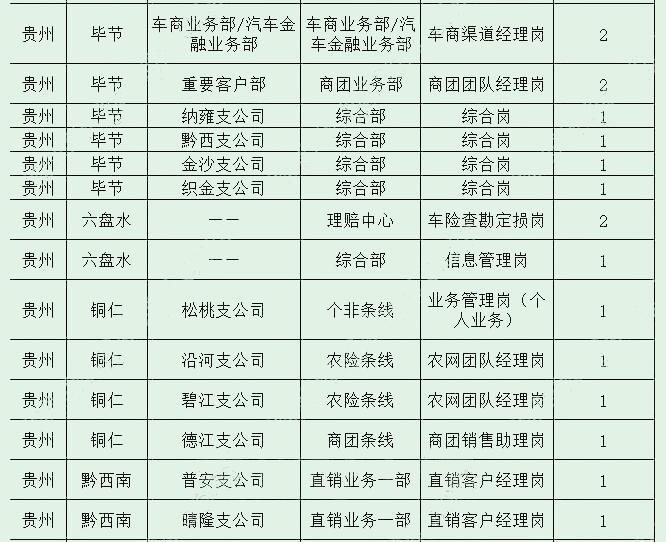 招录岗位主要包括:理赔类、业务管理类、综合行政类、人力资源类、销售类、财务类、风控法律类、市场企划类岗位。