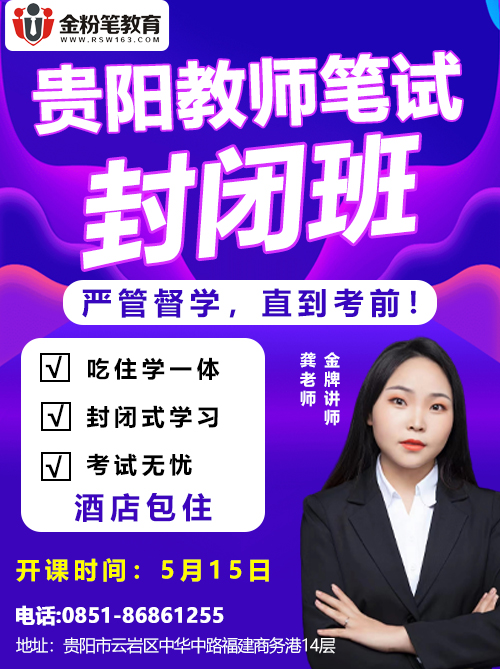 2023年贵阳市中小学、幼儿园教师统一招聘1105人,报名时间5月12日-5月14日,笔试时间6月17日,笔试科目《教育综合知识》。贵阳教师如何备考?贵州金粉笔教育针对贵阳教师开设了笔试培训封闭班。课程详情咨询:13368515037(微同)、13378508157(微同)。