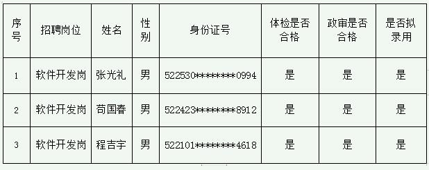 根据《贵州毕节农村商业银行股份有限公司2023年公开引进人才招聘简章》相关要求,毕节农商银行已完成体检、政审环节。现将拟录用人员公示如下: