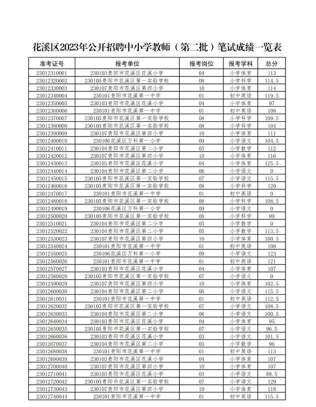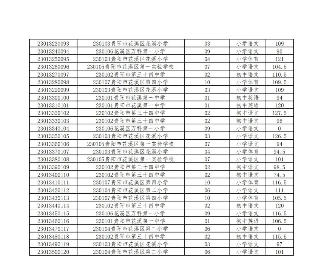 花溪区2023年招聘中小学教师(第二批)笔试成绩查询公告