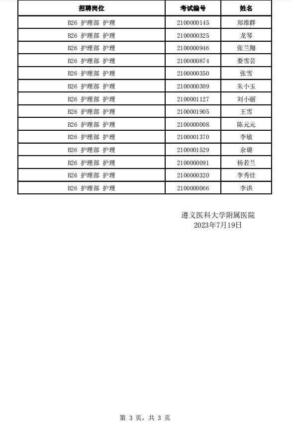 ▫ 贵州医科大学第三附属医院2023年招聘合同制医师递补体检人员的公告