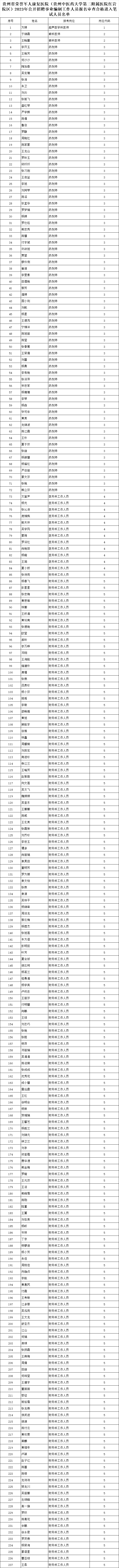 附件:《贵州省荣誉军人康复医院(贵州中医药大学第二附属医院红岩院区)2023年公开招聘事业编制工作人员报名审查合格进入笔试人员名单》