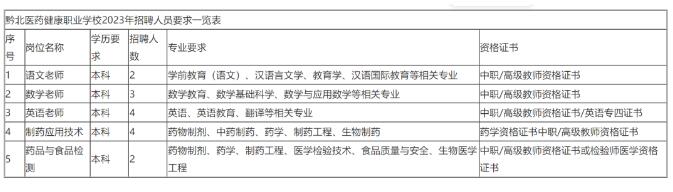 黔北医药健康职业学校2023年招聘人员要求一览表