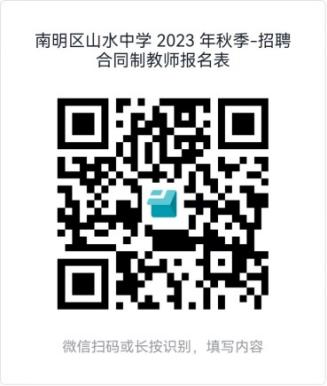 扫描二维码填写「南明区山水中学 2023 年秋季招聘合同制教师报名表」
