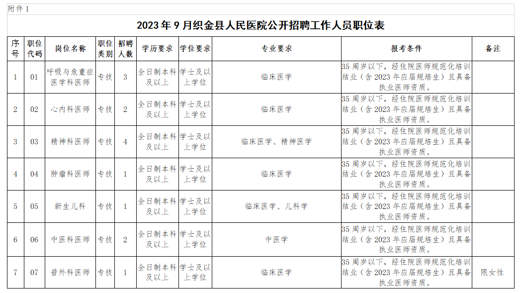 招聘职位及要求详见《织金县人民医院公开招聘工作人员职位表》(以下简称《职位表》),职位表附后。