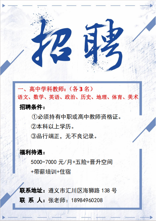 ▫ 遵义清华中学2023年教师招聘公告(22名|报名截止12月31日)