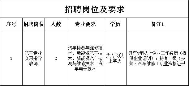 1.本次招聘采用面试+技能实操的方式进行,应试者根据所报岗位的专业需求,准备15分钟的试讲,要求有教案,授课内容在所报专业范围内由应试者自选;技能实操考核,考核面试者操作汽车机电维修方面能力。