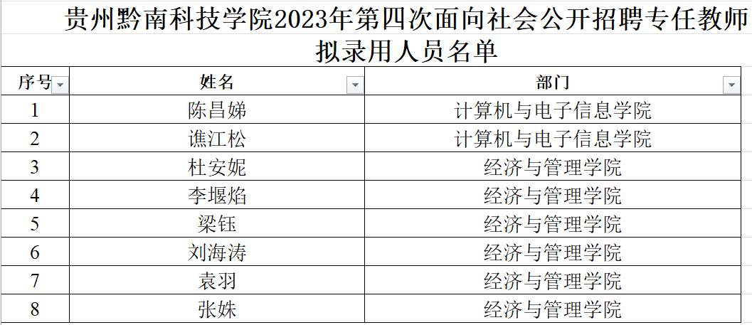 贵州黔南科技学院2023年第四次面向社会公开招聘政审、体检工作已结束,根据学校师资队伍建设实际需求,现将我校政审、体检合格人员及有关事宜公告如下。
