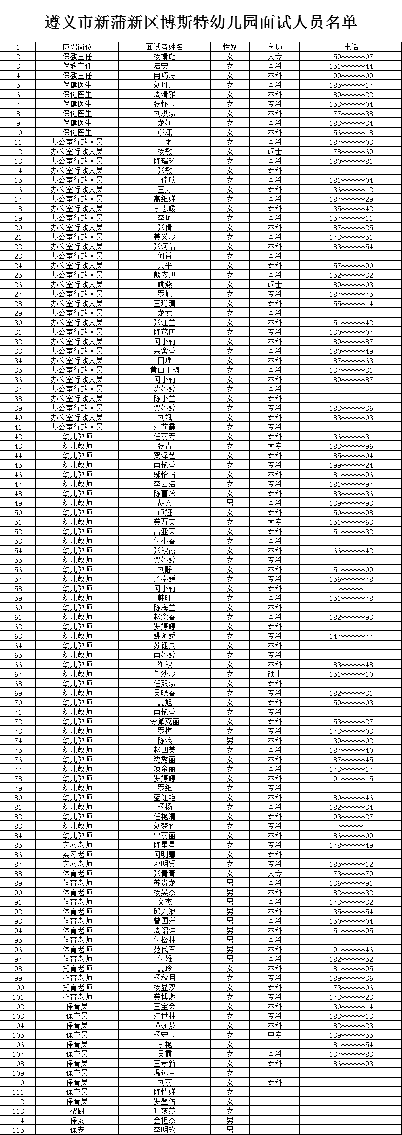 面试方式详见招聘简章:遵义市新蒲新区博斯特幼儿园教职工招聘简章