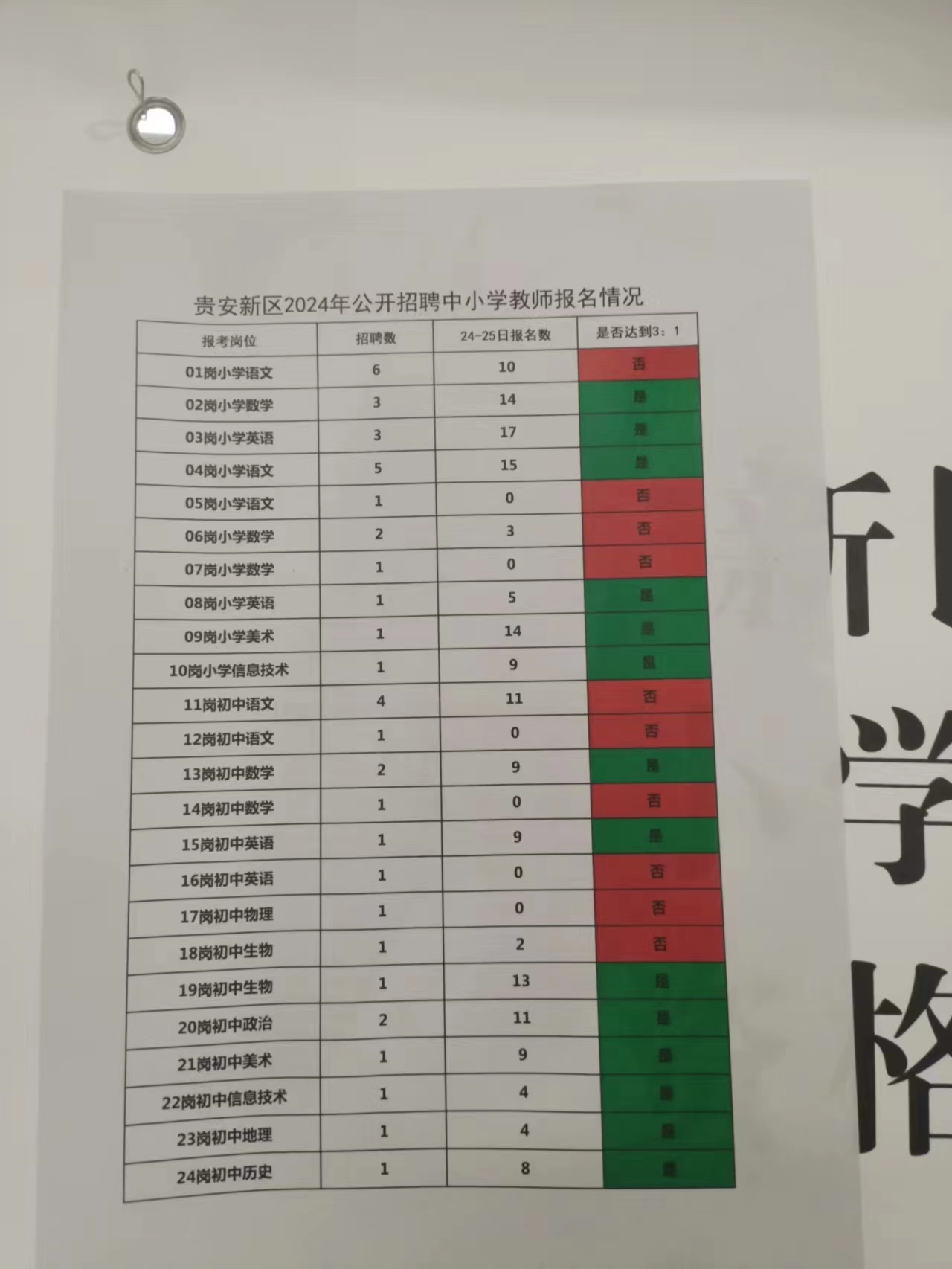 贵安新区2024年招聘中小学教师1月25日报名人数公示表(167人)