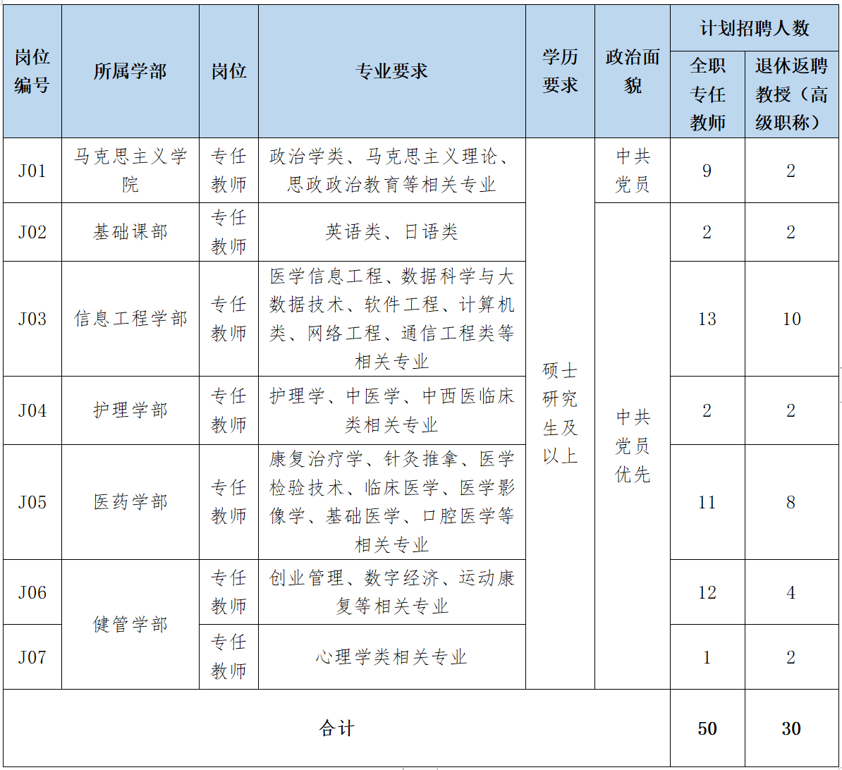4.所学专业或所从事专业工作与我校专业建设发展需要相符,业务能力水平高,适合我院相关教学科研、管理工作。