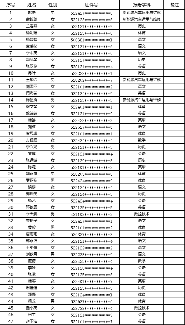 遵义市职教中心(遵义市红花岗区中等职业学校)2024年2月临聘教师面试名单
