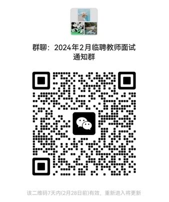 入围面试的考生请于2024年2月26日12:00前扫描下方二维码加入微信群,昵称更改为“报考科目+姓名+联系电话”。逾期未进群的,将视为考生自动放弃面试资格。