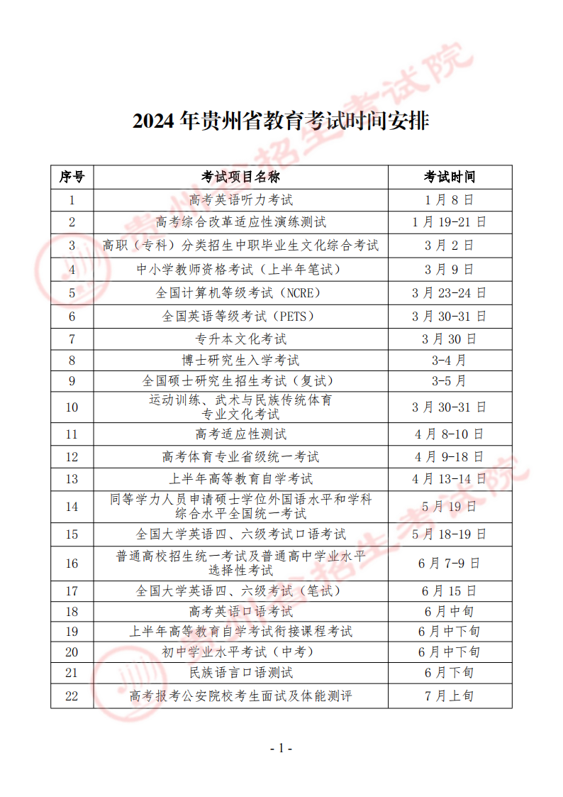 关于发布2024年度贵州省专业技术人员职业资格及职称考试计划的通知