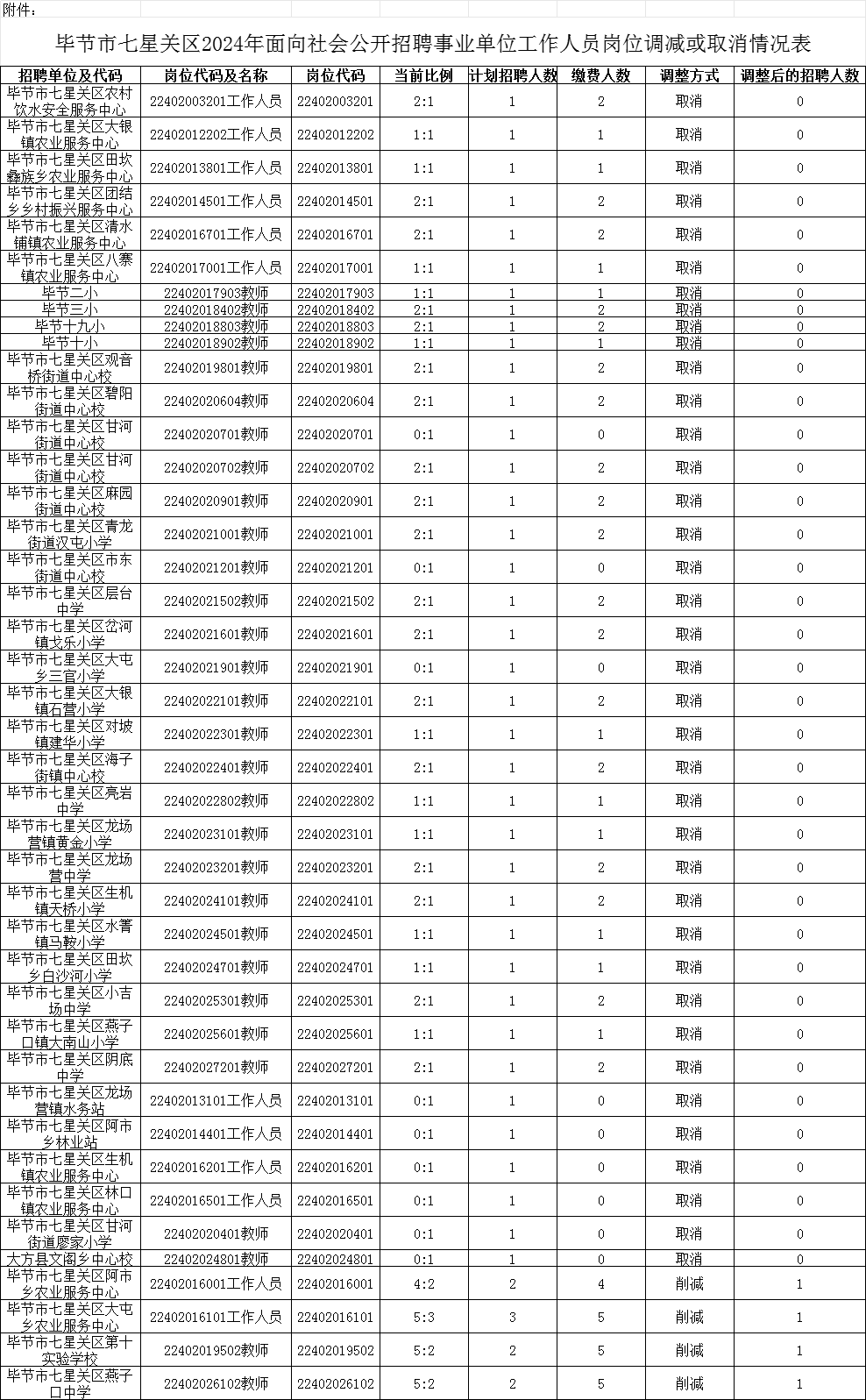 附件:毕节市七星关区2024年面向社会公开招聘事业单位工作人员部分岗位招聘计划减少或取消情况表.xls